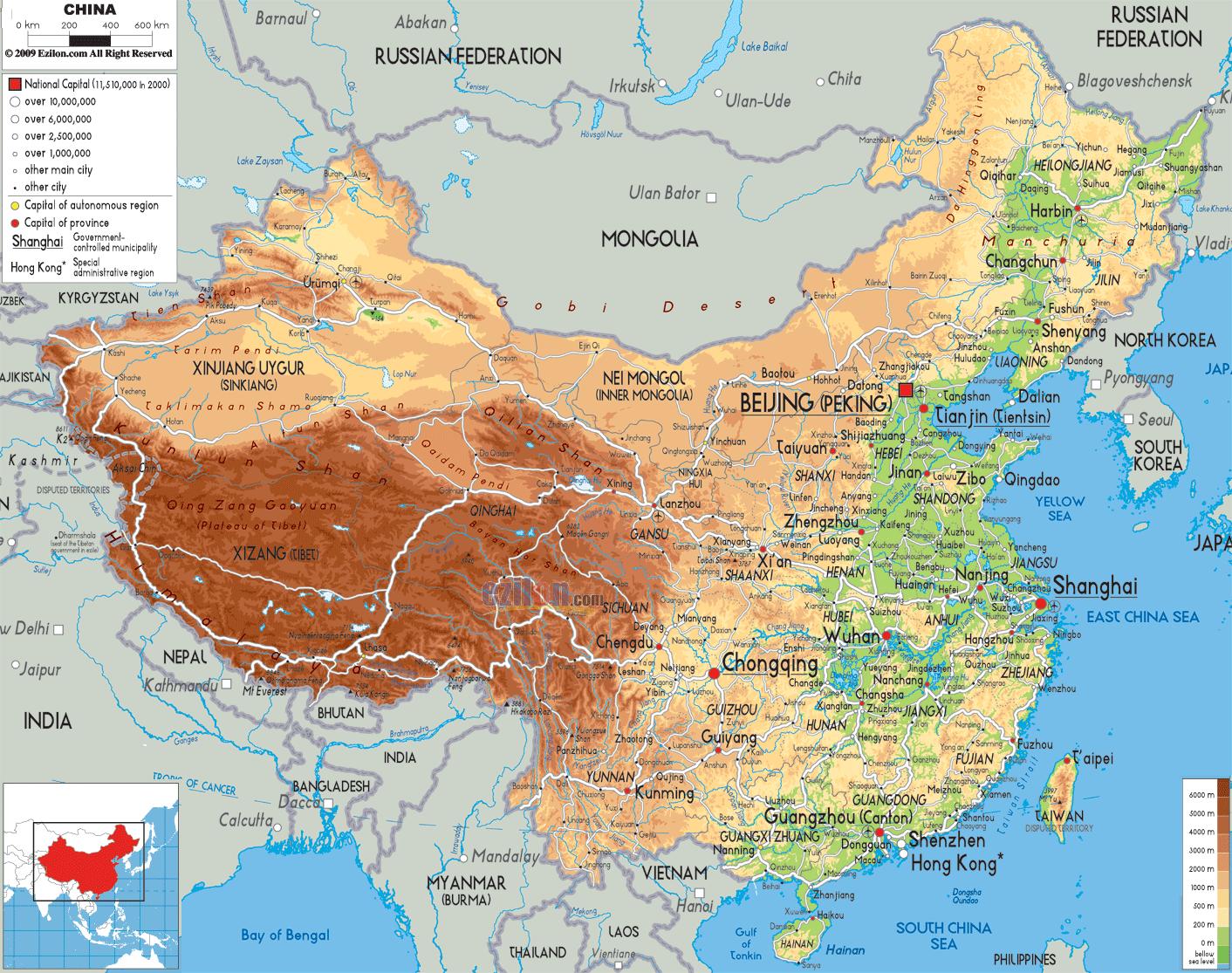 الصين في الخريطة. الذقن خريطة (الشرقية وشرق آسيا ، جنوب شرق آسيا) إلى الطباعة. الذقن خريطة (شرق آسيا - آسيا) لتحميل.